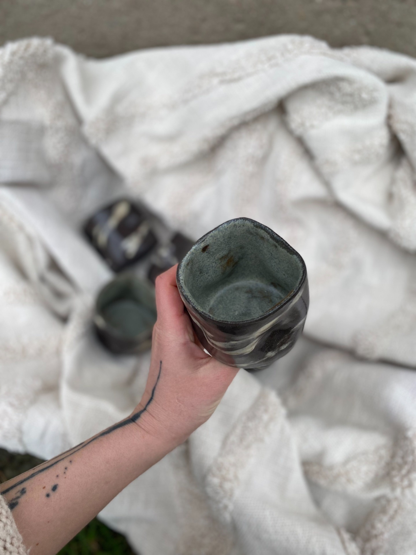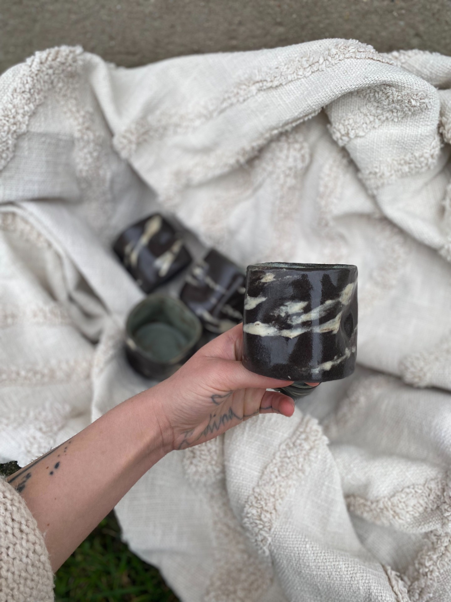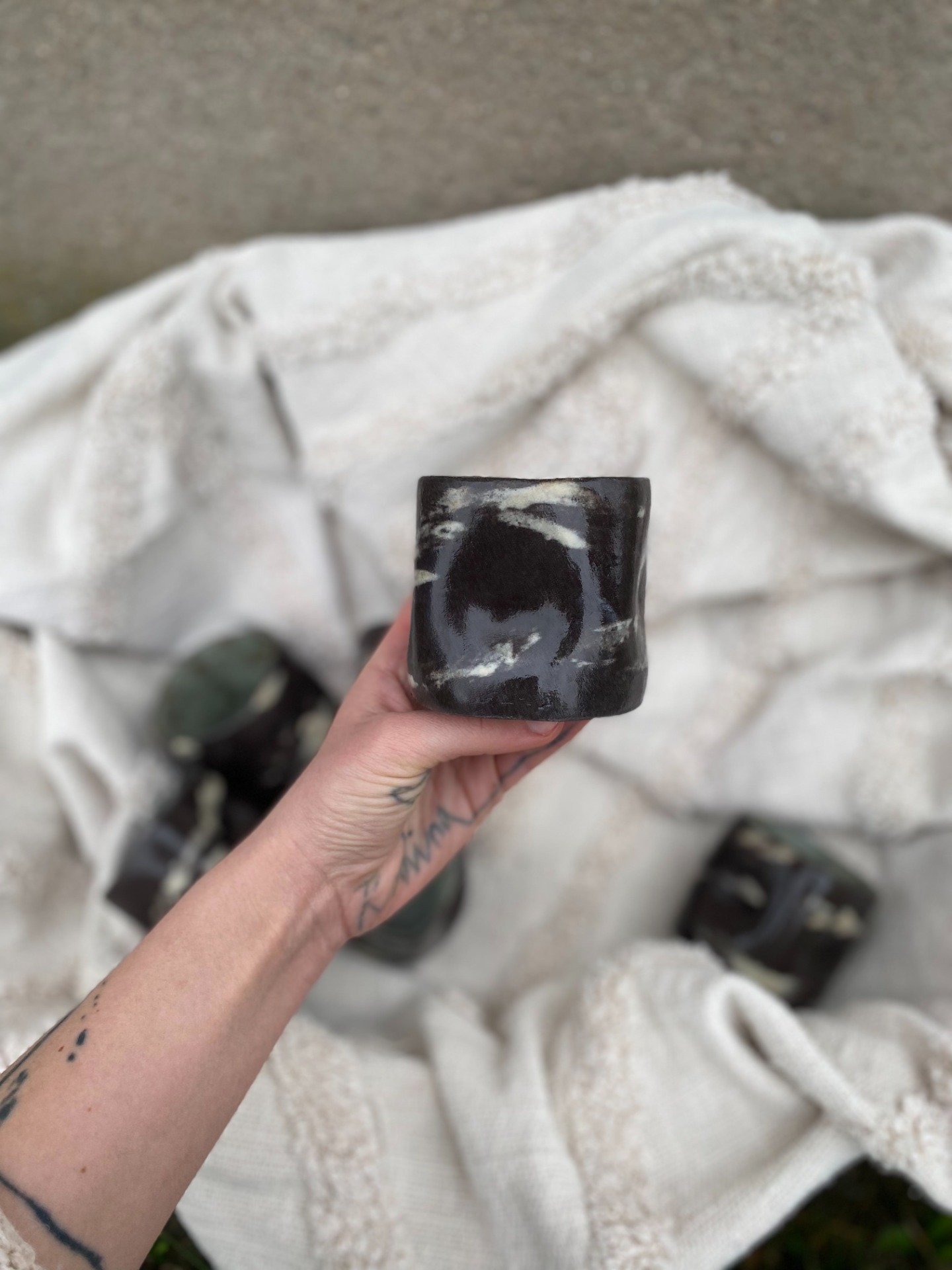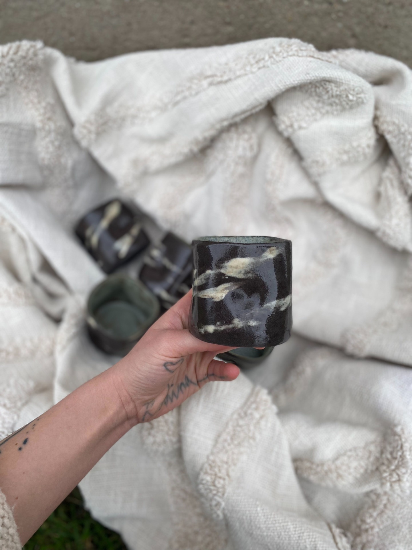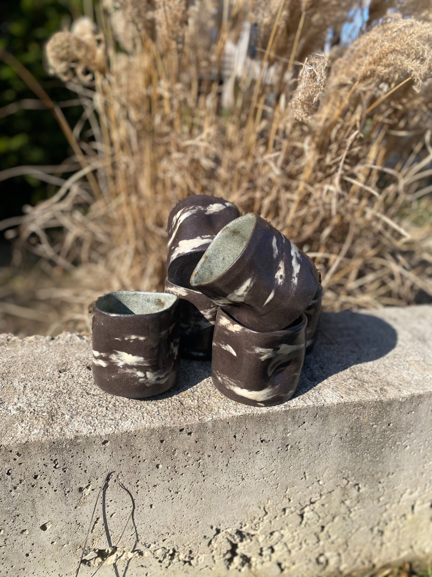 Kalíšky mají promačkaný tvar a jsou tak netradičně příjemné do ruky. Žíhaným vzhledem se odlišují od ostatních a je tak každý úplný originál - nenajdete dva stejné kusy.