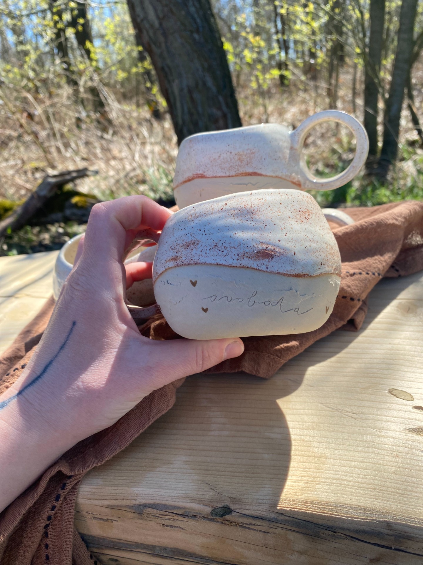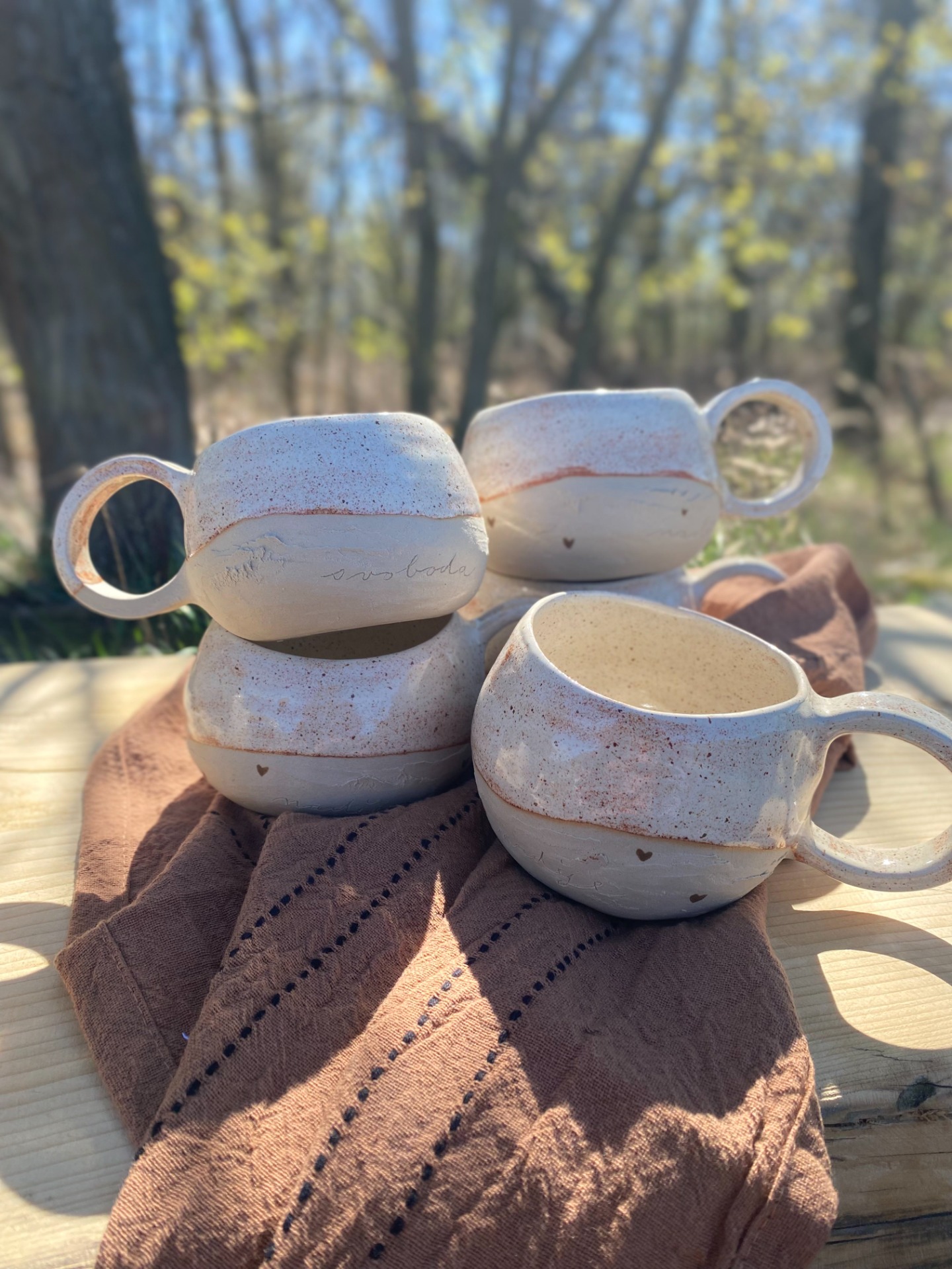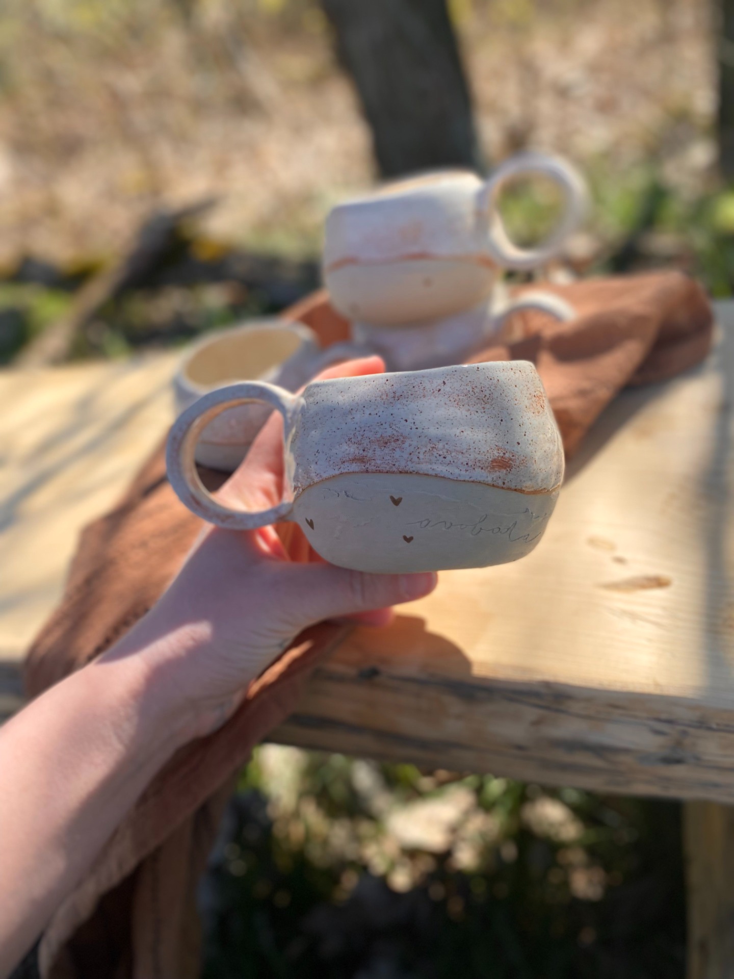 Hrnky, do kterých je vtištěná myšlenka ještě o kousek víc. Do každého jsou vyrytá slova naděje & svoboda - na první pohled ne tak zřejmě, ale přeci se můžete spolehnout, že tam vždycky budou a budou provázet každé vaše ráno.