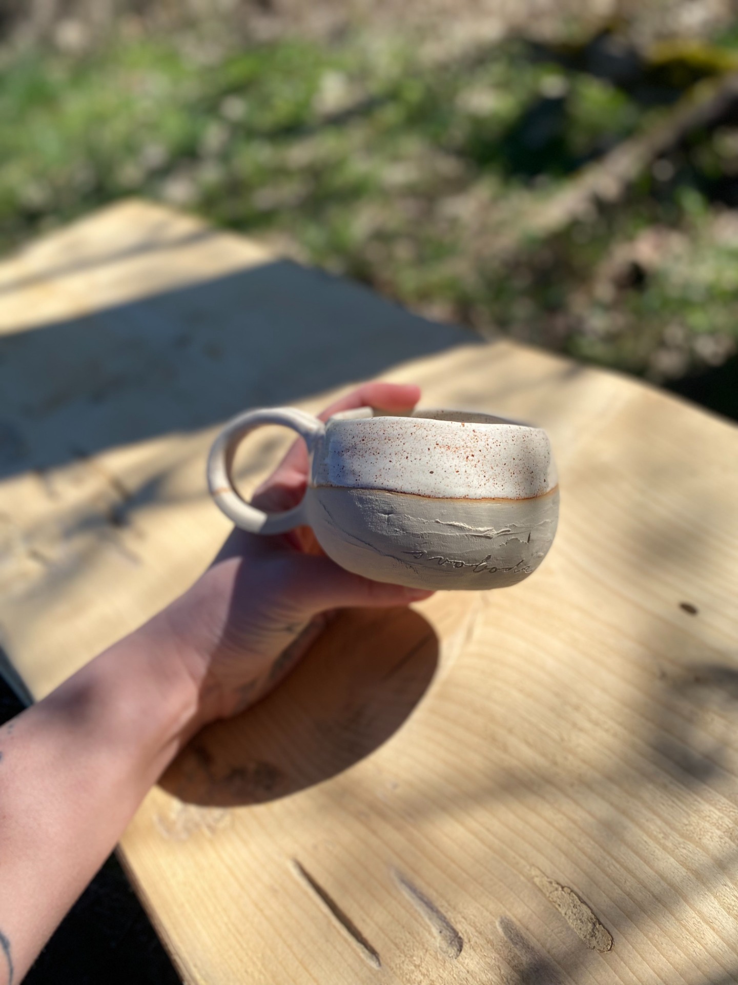 Hrnky, do kterých je vtištěná myšlenka ještě o kousek víc. Do každého jsou vyrytá slova naděje & svoboda - na první pohled ne tak zřejmě, ale přeci se můžete spolehnout, že tam vždycky budou a budou provázet každé vaše ráno.