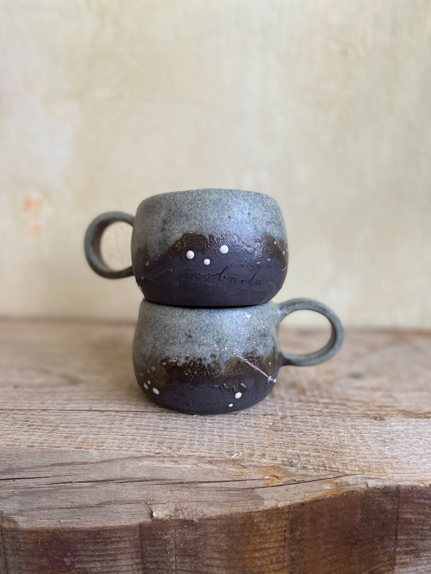 Hrnky, do kterých je vtištěná myšlenka ještě o kousek víc. Do každého jsou vyrytá slova naděje & svoboda - na první pohled ne tak zřejmě, ale přeci se můžete spolehnout, že tam vždycky budou a budou provázet každé vaše ráno.
