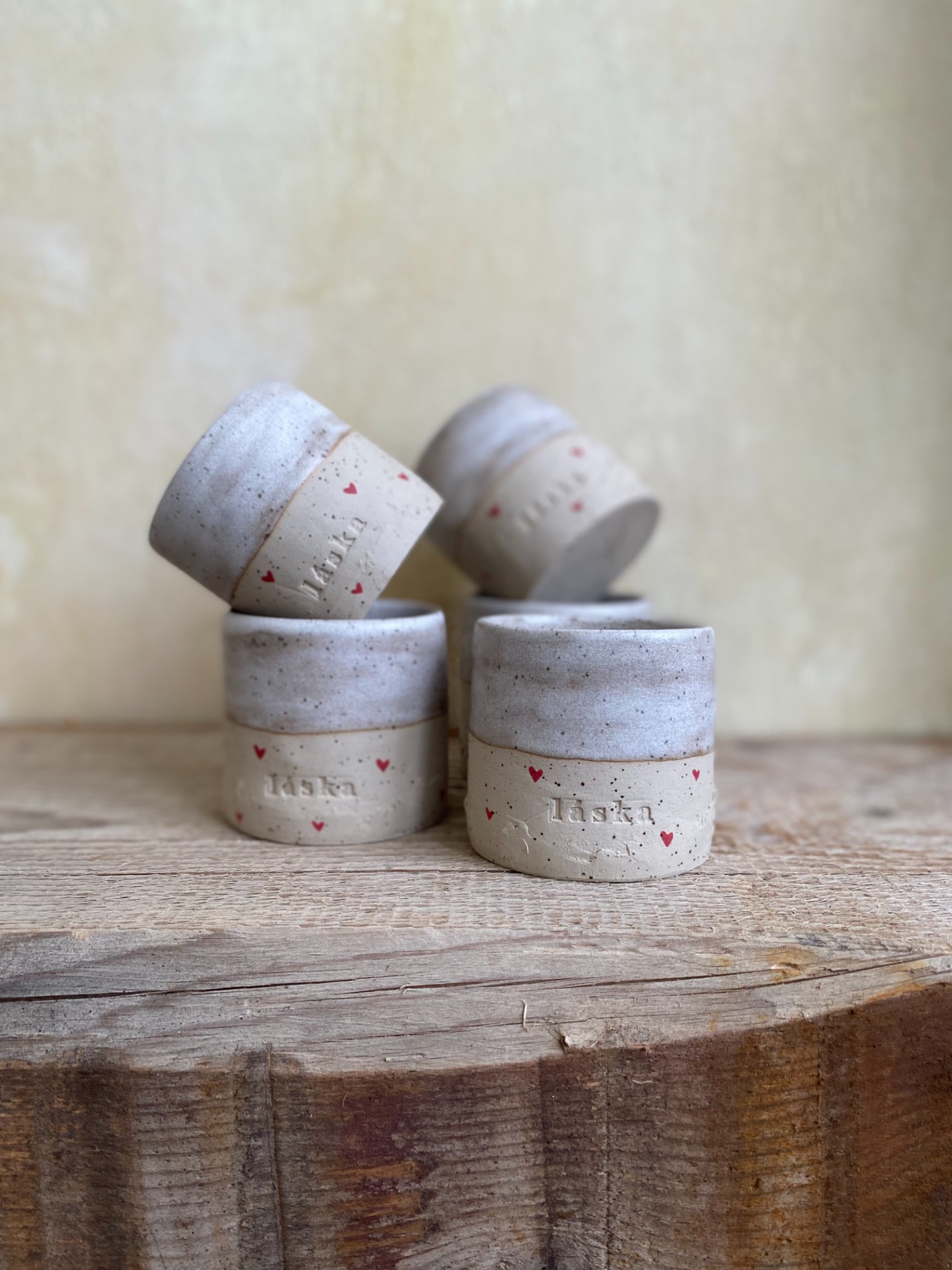 Ručně modelovaný, jedinečný kalíšek plný lásky o objemu cca 150-160 ml.